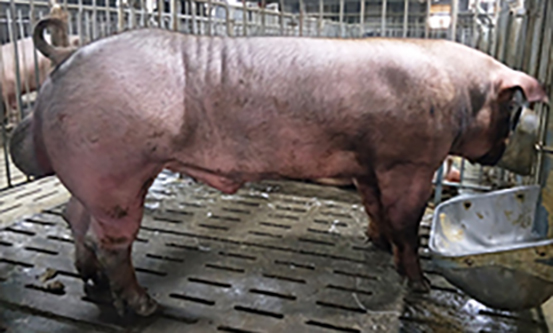 祥欣美系大白背腰平直、四肢粗壯、抗逆性強、產仔數高。祥欣大白母豬窩產活仔數大于13頭,平均初生個體重大于1.5公斤。是理想的二元配套母系品種。