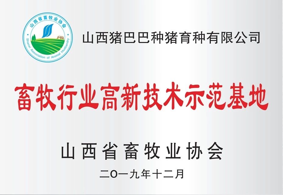 公司2019年9月被認定為“山西省一級種公豬站”;2019年10月被山西省畜禽繁育工作站增設為“山西省省級種公豬站”;2019年11月被上海祥欣畜禽有限公司確立為“上海祥欣(太原)種公豬站”;2019年12月被山西省畜牧業協會授予“畜牧行業高新技術示范基地”;2019年11月成功入選《全國優秀公豬站圖譜手冊》。