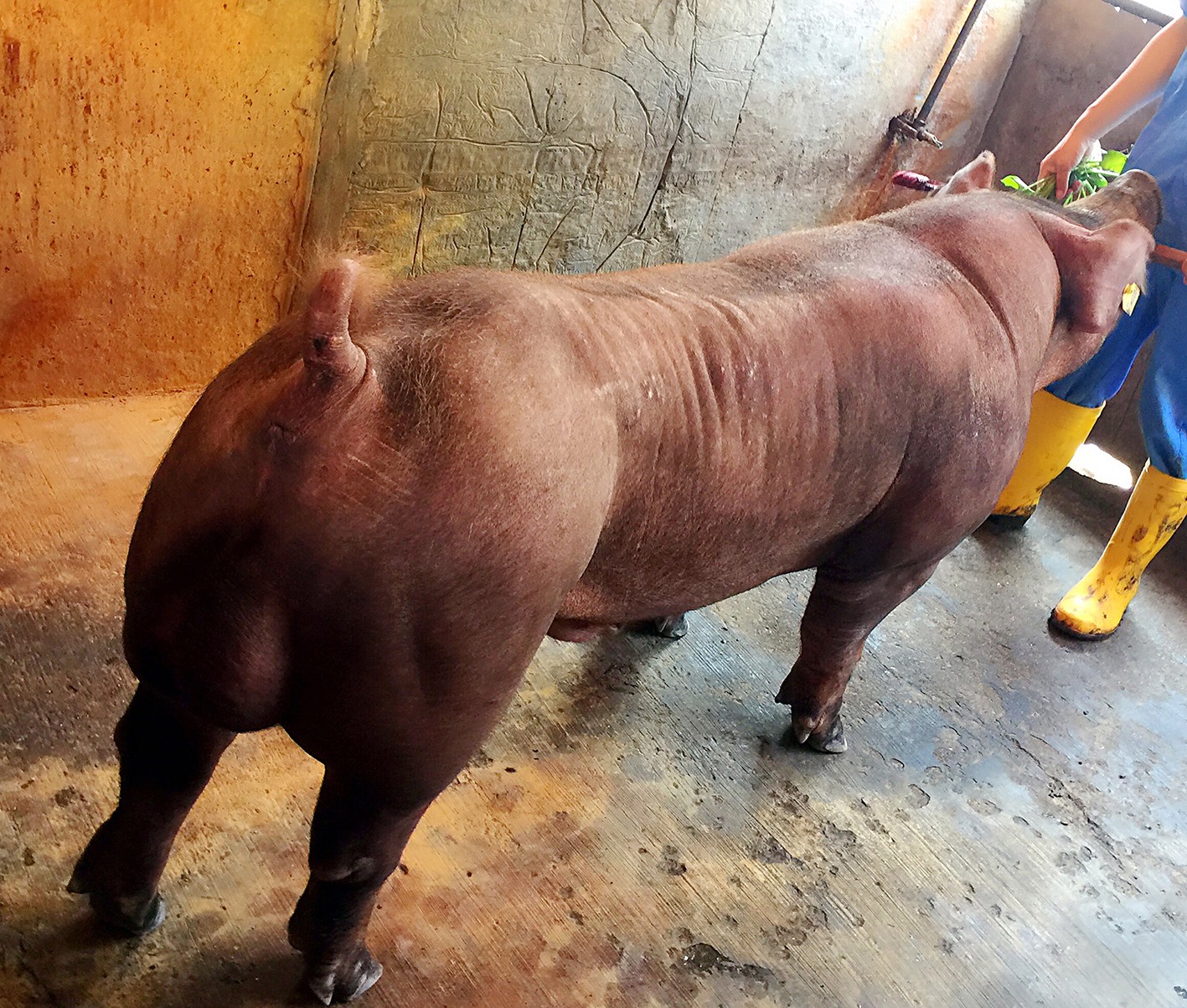 祥欣美系杜洛克豬背寬臀碩、體長腿粗、膘薄肌深、快長省料。祥欣杜洛克115kg體重日齡平均約160天;70至130公斤體重區間料肉比2.5。是二元母豬(法、丹、美、加)的最佳配套伴侶。